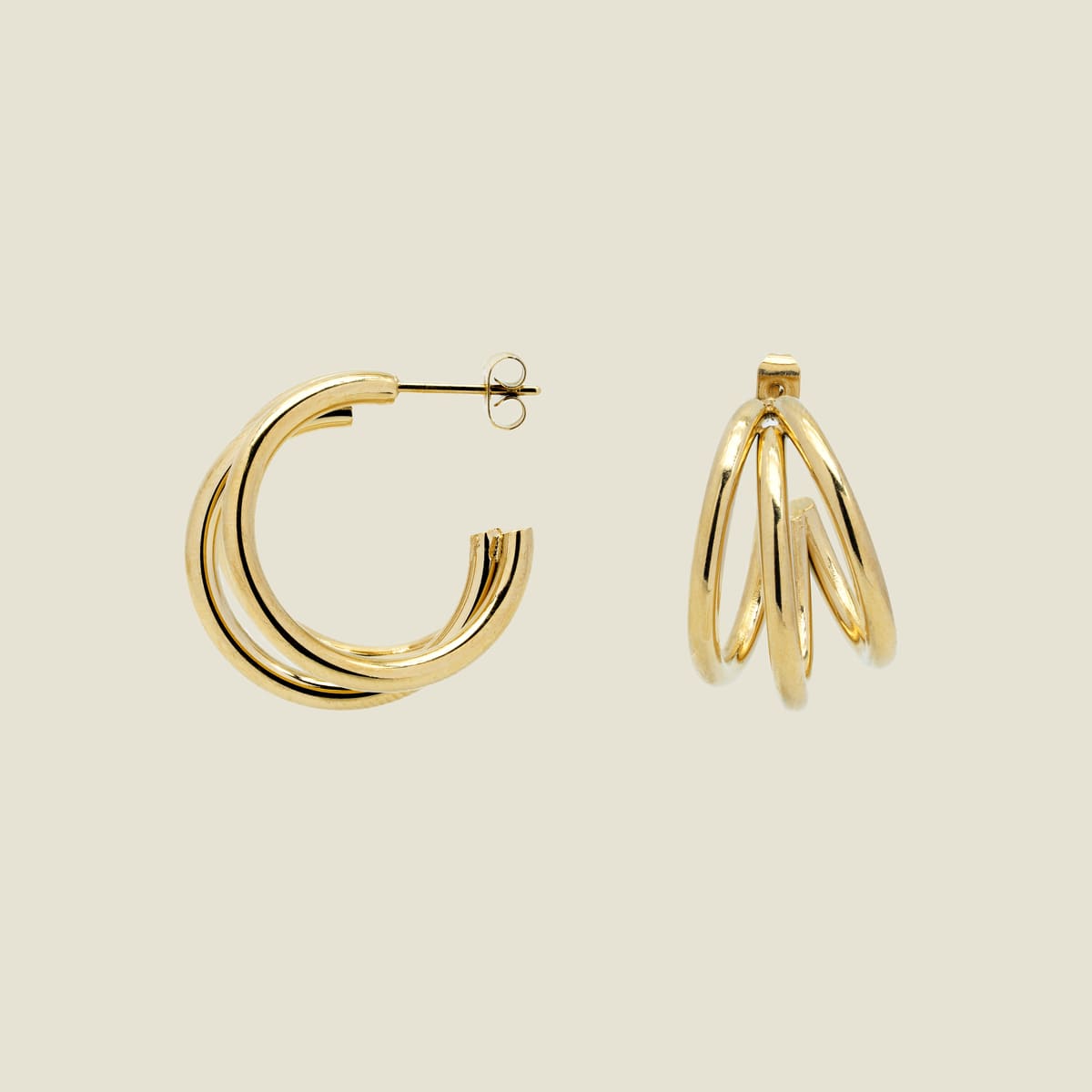 Orecchini a cerchio a tre fili.