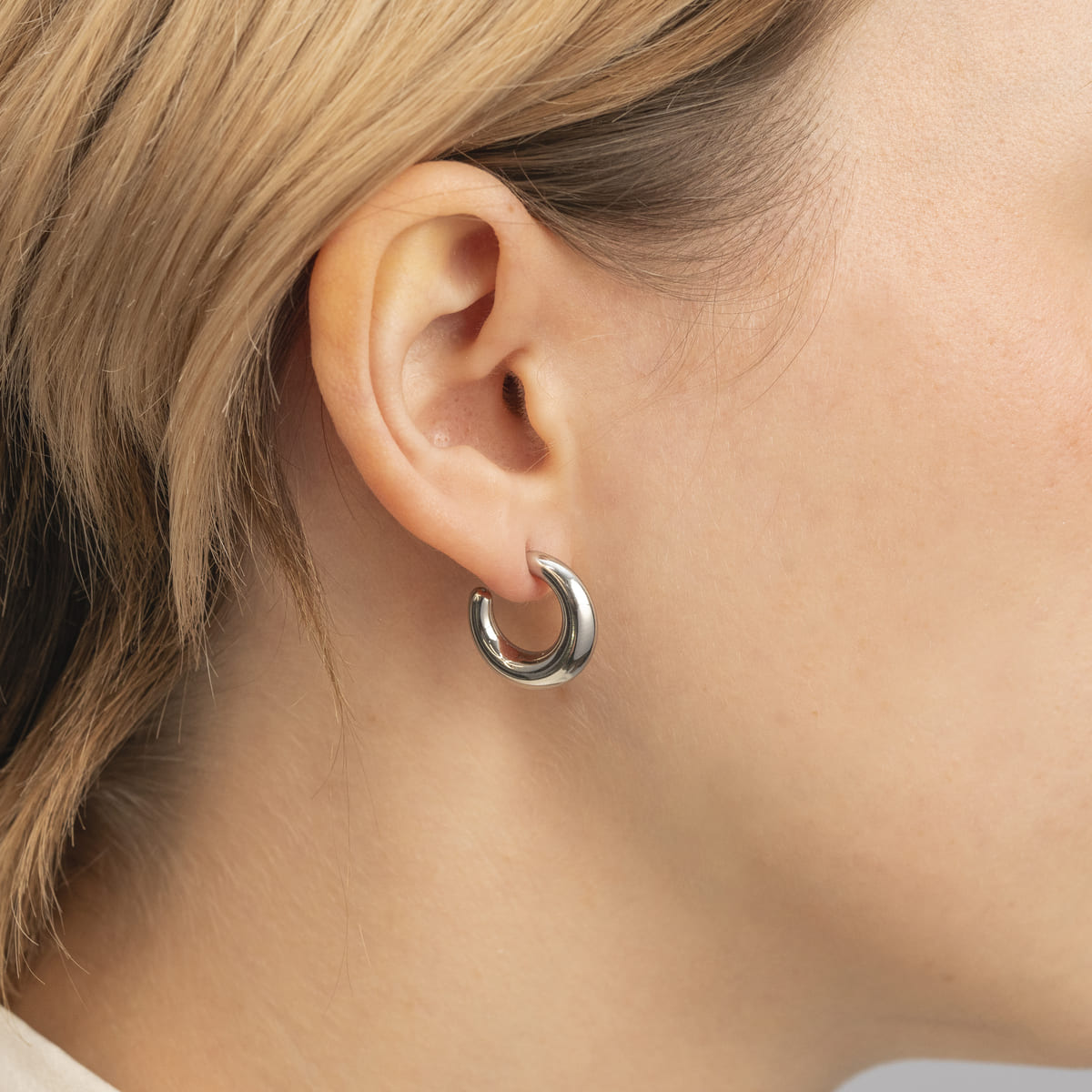 Orecchini a cerchio a forma di luna nella misura piccola.